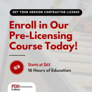 Now, prospective contractors can obtain their license by enrolling in the PDH Academy Pre-License course, priced at $128, which includes the essential NASCLA manual and course—offering an economical option for aspiring contractors or contractors looking to expand their business in Oregon.